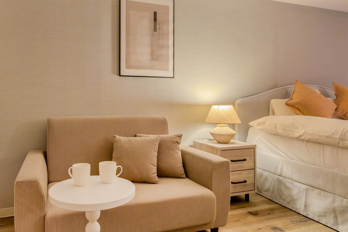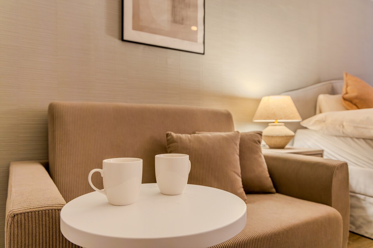 이 아늑하고 세련된 아파트는 엘리베이터가 설치된 안전한 건물에 위치해 있어 편리하고 접근성이 좋습니다. 단기 및 장기 숙박 모두에 적합한 이 아파트는 현대적인 편의시설과 따뜻한 분위기를 자랑합니다.